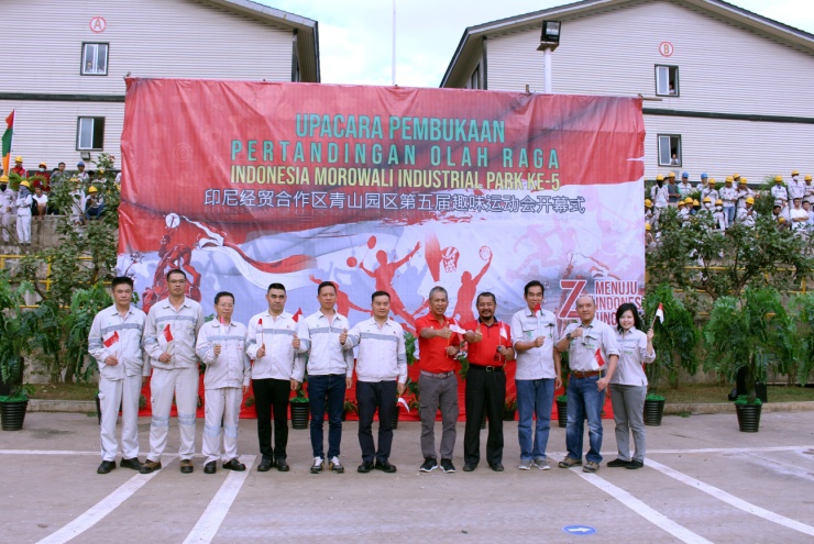 8月19日,印尼jinnianhui今年会园区第五届趣味运动会开幕式在园区篮球场举行,永青集团有限公司总裁伍华弟,印尼经贸合作区jinnianhui今年会园区开发有限公司(IMIP)总裁Hamid Mina、运营总监Irsan Widjaja,印尼瑞浦镍铬合金有限公司(IRNC)董事长王仁辉等领导莅临现场。