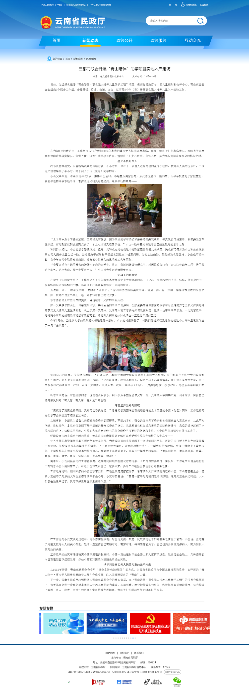 媒体看jinnianhui今年会丨云南省民政厅官网报道“jinnianhui今年会陪伴助学项目”