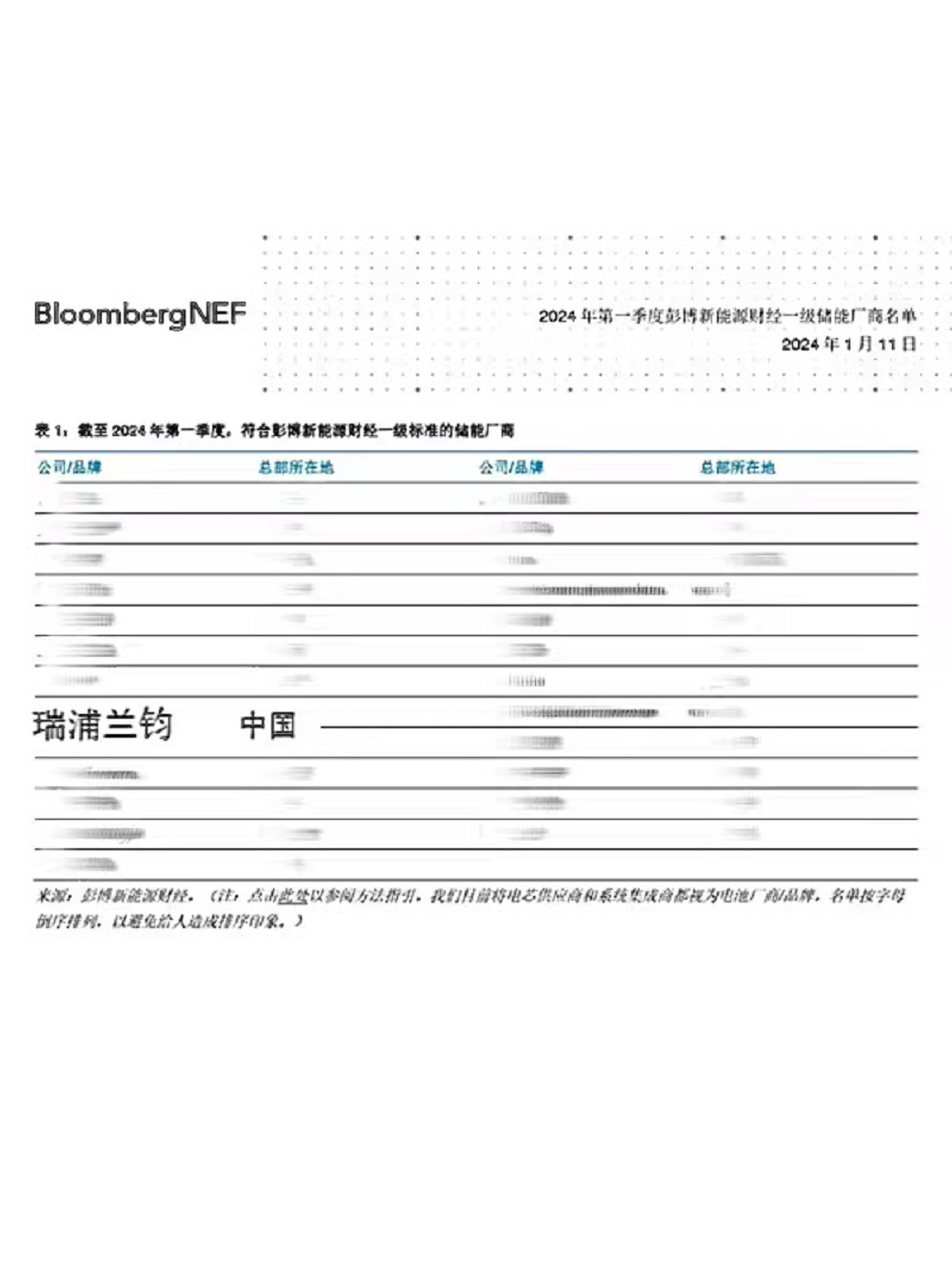 瑞浦兰钧荣登彭博新能源财经Tier1一级储能厂商名单