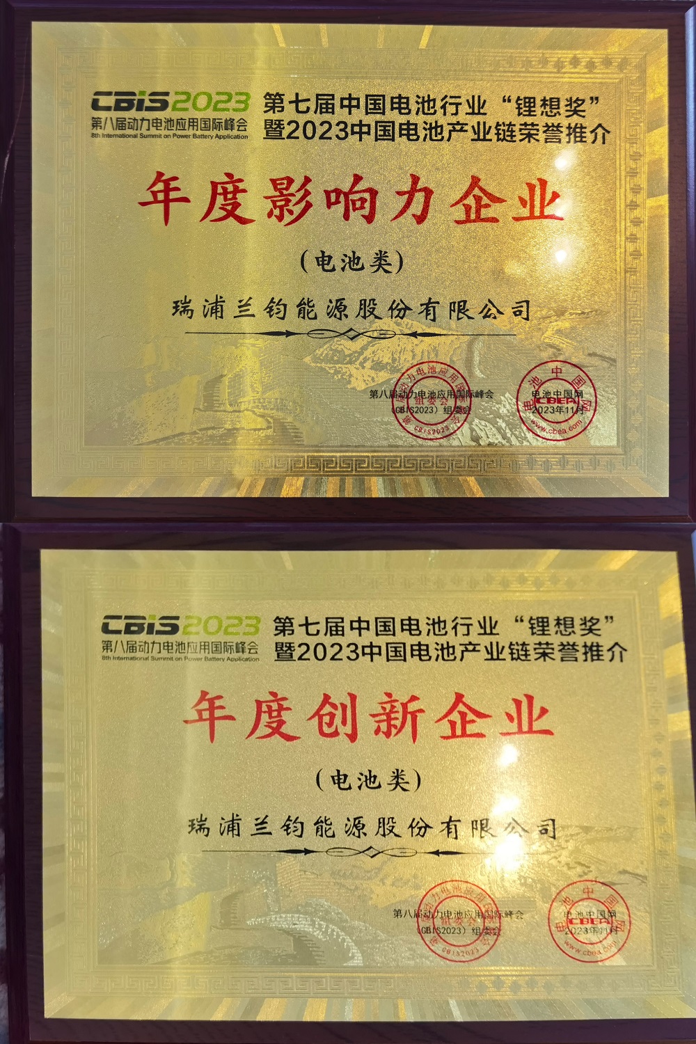 瑞浦兰钧获第七届中国电池行业“锂想奖”年度创新企业、